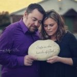 Angela will go to great lengths for parents in order to facilitate their stories in poignant photography. One image required nearly burying a post-abortive mother in dirt. Angela noticed a neighbor’s unfinished hole in their landscaping and knocked on their door. She politely asked to conduct an unusual photo shoot using their incomplete project. The answer was a tenuous yes however the owners maintained a presence at their window to observe the process, a phone at the ready to summon authorities if necessary.